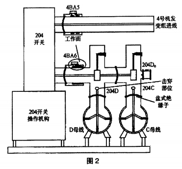 12月6日对电流互感器4BA6B相进行检查处理,票中的安全办法有断开204开关,拉开204C刀闸、204D刀闸,合204DO地刀等。12月7日,检修持票将该间隔4BA6B相气窒内SF6气体抽至零表压后(该气室内还有1个大气压的 SF6气体)。翻开B相气室端盖,对断线进行处理后回装好端盖,在对气室抽真空时,报“220kVo母线槽复合电压动作",“220kVD母线槽保护动作”,联接于D母线槽上的悉数电气元件悉数跳闸,D母线槽失压。