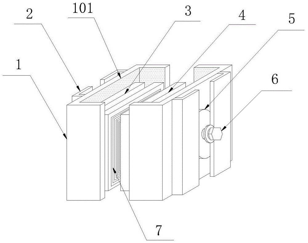 2.根据权利要求1所述的一种环氧树脂浇注母线槽联接器,其特征在于,所述钢架(1)的内周围面设置有绝缘层(101),所述绝缘层(101)的材料为环氧树脂。